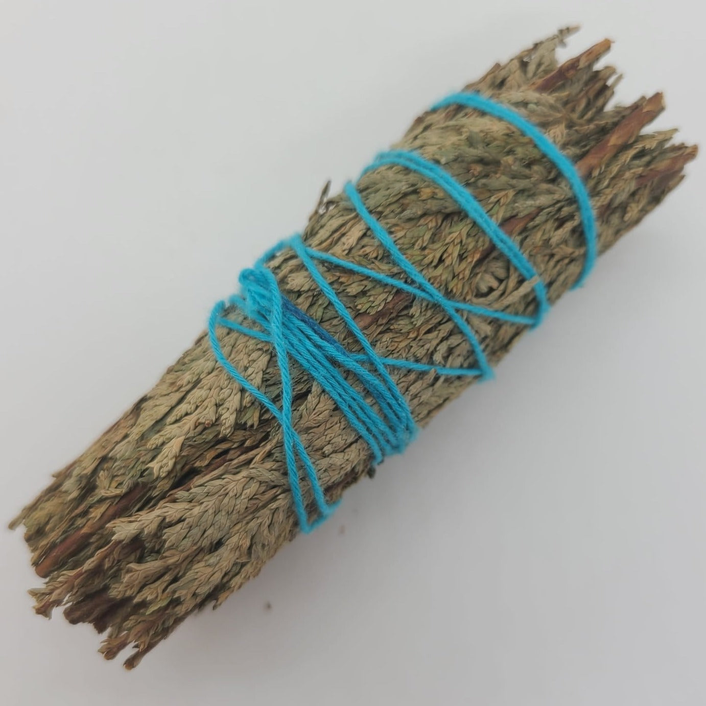Cedar smudge sticks have been used for centuries in rituals and cleansing ceremonies. It's best known for its power to purify places, objects and people. Cedar is also known for its ability to attract good spirits and eliminate negative energy and allow you to set intention. In tradition it was used to carry prayers and open up possibility. Cedar is used for banishing rituals. It is also used for spell breaking. We use cedar to call upon the forces of the Sun. Moreover, cedar protects us, creating a barrier of good magic around us. Cedar is also believed to promote longevity and good health.