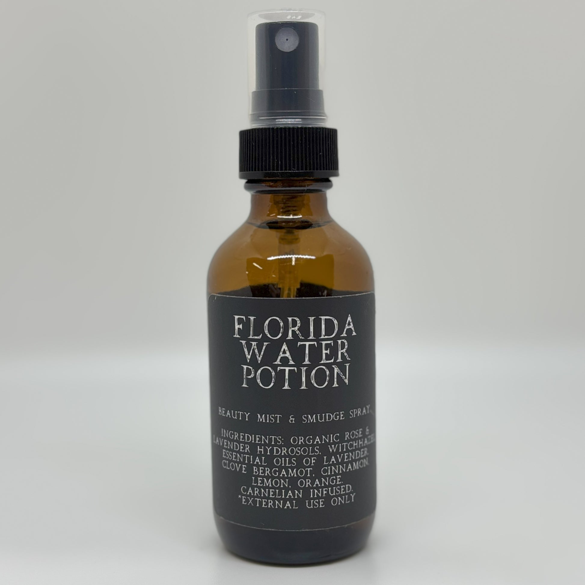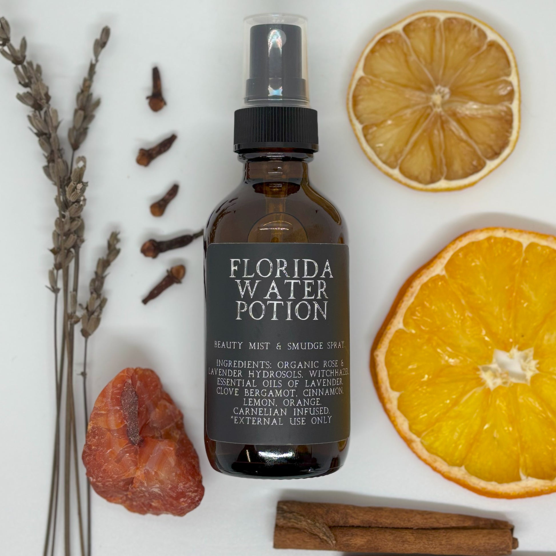 Our Florida Water Potion is perfect as a beauty mist, Added to a bath, used as a perfume, put on energy points like the third eye, sprayed in the air to smudge or utilized to clean and prepare a counter or work station. The citrusy scent of the potion means that it’s both energizing and purifying. It’s also said to represent the fountain of youth and is the ideal way to prepare yourself and everything around you for all that is coming.