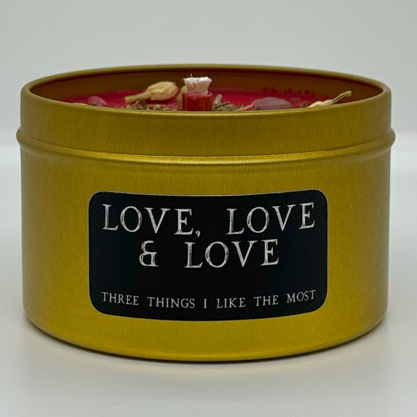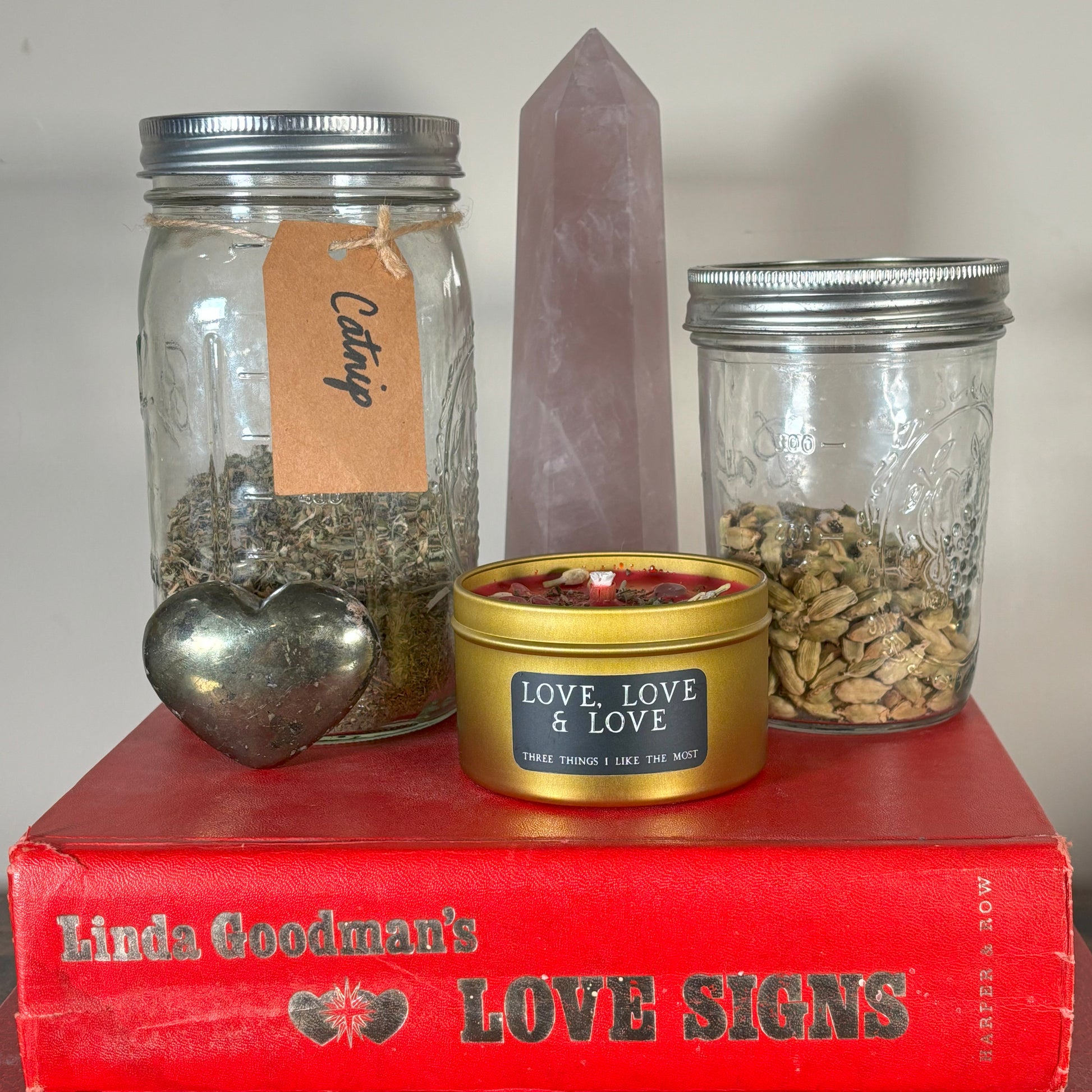 Love, Love & Love candle uses ancient recipes and old magic to celebrate, honor and welcome love of all forms. This beguiling concoction is believed to have originated from the “Ladies Court” of the Middle Ages, who discovered this alluring alchemy. Containing an aphrodisiac, this candle can jumpstart libido, boost fertility and relieve frigidity, while amplifying love in its three forms. Eros love is that of romance, eroticism, passion and even intoxication with another person. Phileo love is the love of family, friendship, community and self. Agape the love which transcends all worldly circumstance and remains unconditional.