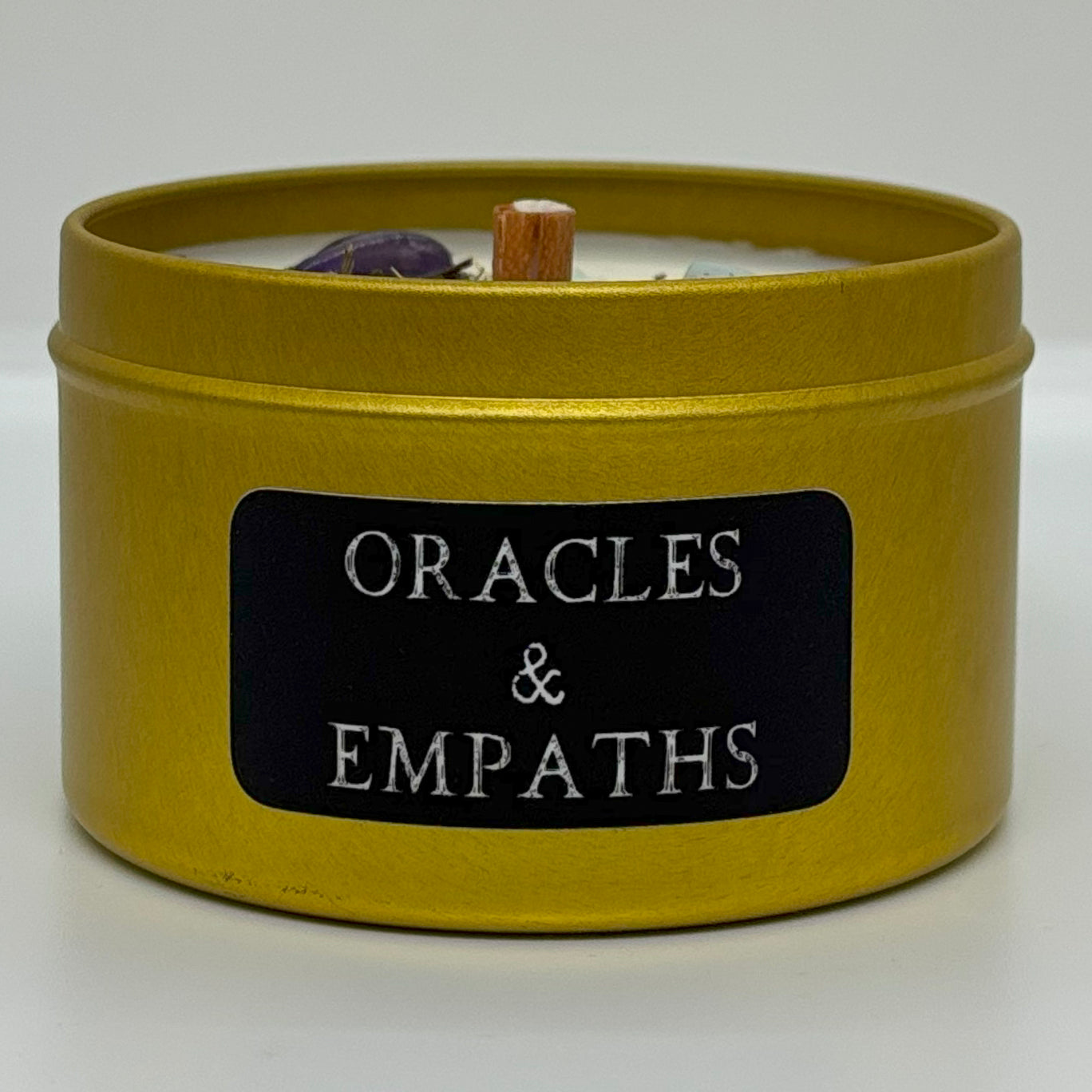 Our 8oz collection of candles in gold metal containers with lids. These...