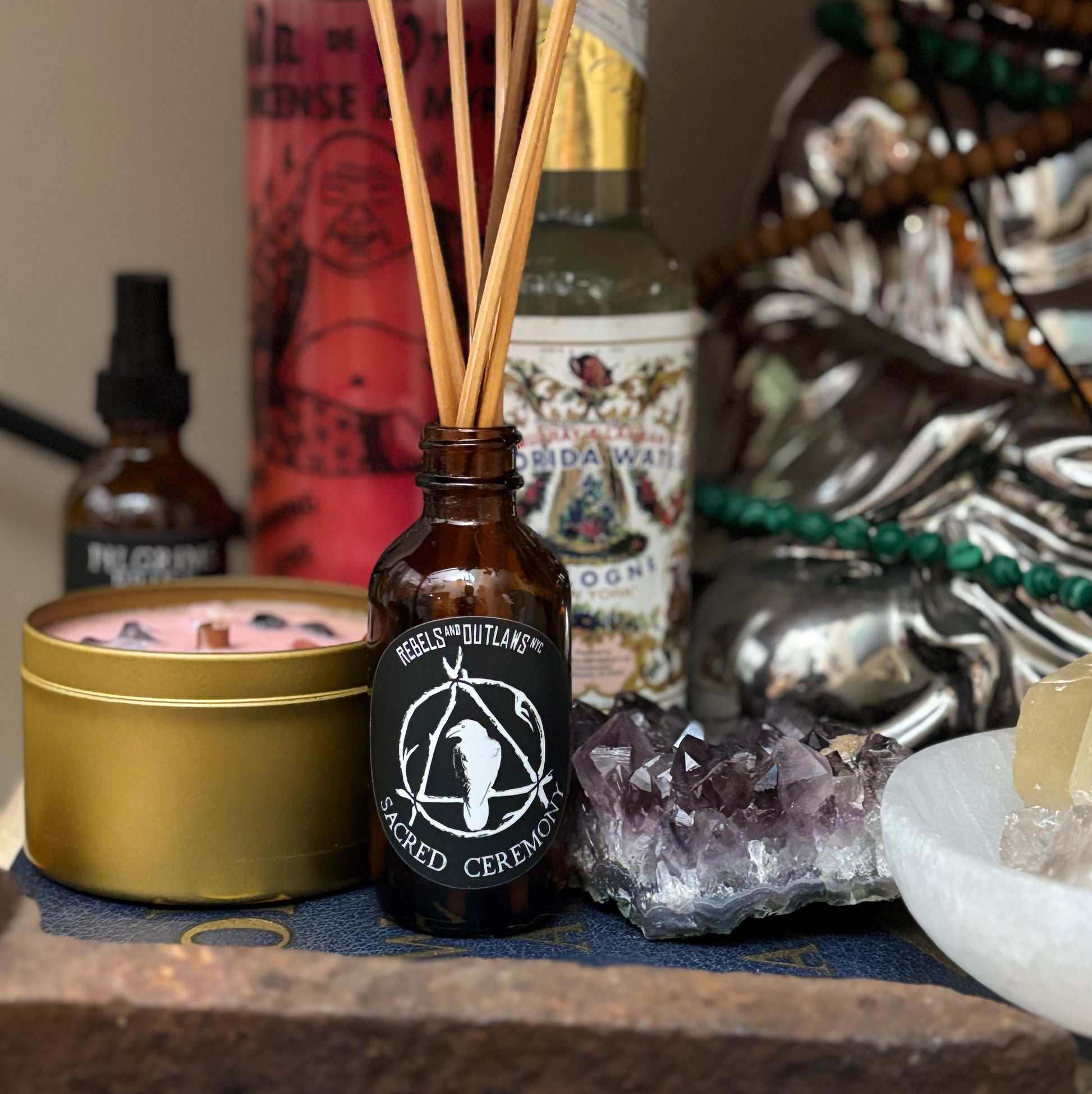 Created with the same natural oils as their corresponding candle and finished with the same crystals, our Reed diffusers offer you a way to protect your energy and prepare your space without needing to burn.