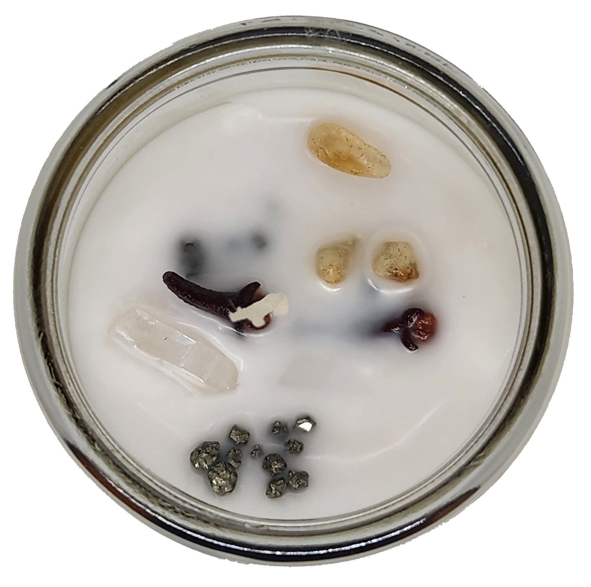 Our Stevie Nicks inspired, Gold Dust Woman Sacred Ceremony Candle is finished with Frankincense and Myrrh, Pyrite, Citrine, Clear Quartz and Clove. It conjures up the magic and Inspiration of one of the most incredible women in music and the power and majesty if the moon. It offers an opportunity to get rid of the old. An old pattern, behavior, attitude, relationship, situation or mindset.