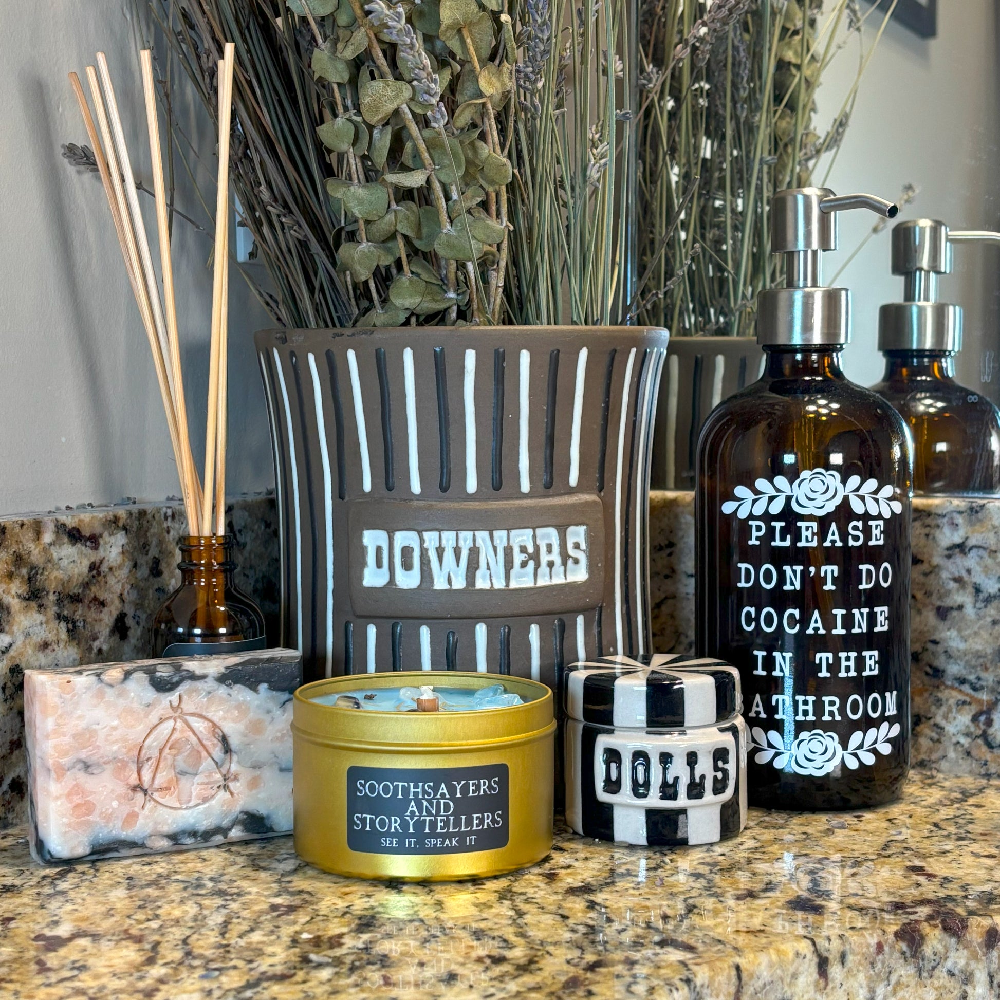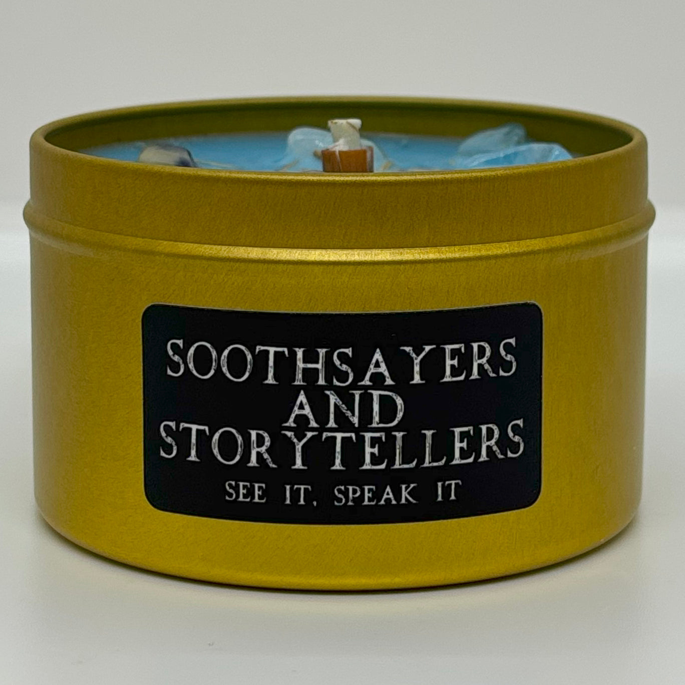 Sweet peppermint, and earthy eucalyptus combine in this candle for a refreshing spa-like scent. Hints of cedarwood add depth that make this a perfect year-round frangrance for a quiet weekend with friends, meditating, or a spa retreat to let you feel beautiful and trouble-free. Our Soothsayers and Storytellers candle helps you hone into what matters and return balance to yourself.