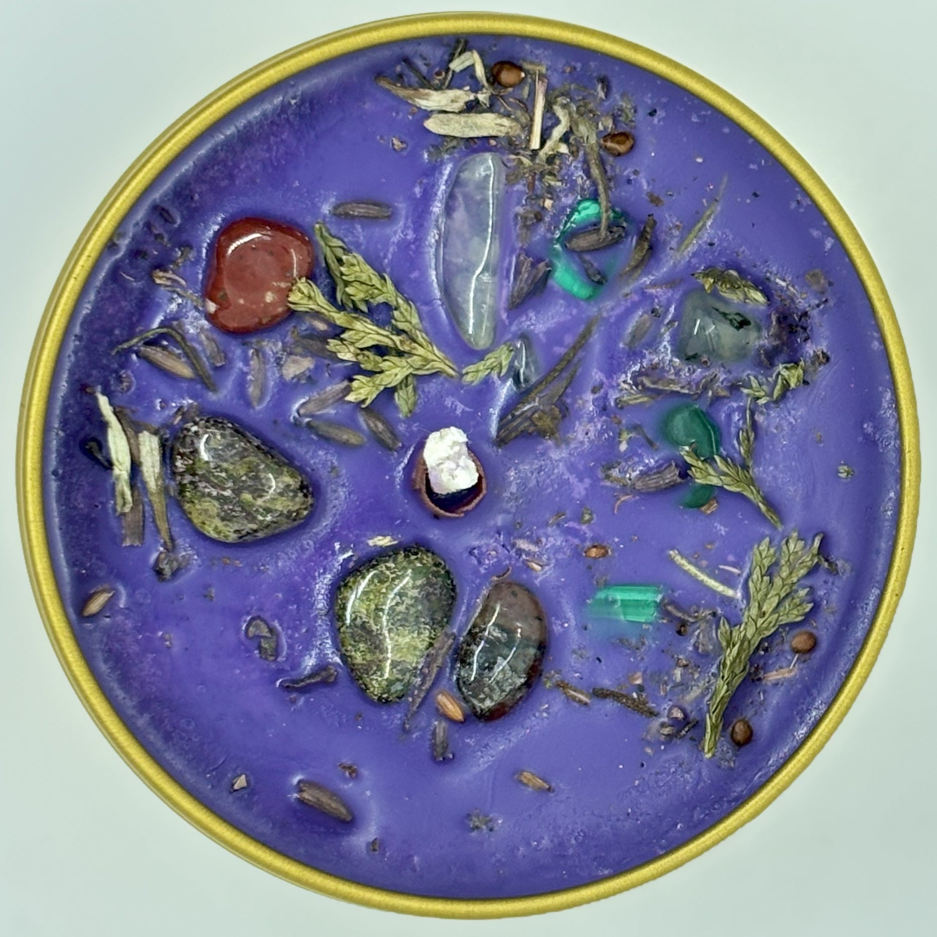 This candle is prepared with lavender for peace and clarity and sage for longevity and wisdom. Fir is used for magic that brings power, insight and progress. Cedar helps provide strength and illuminate focus.